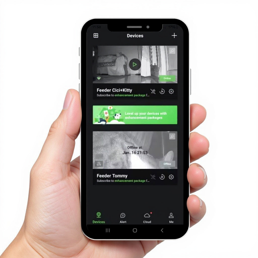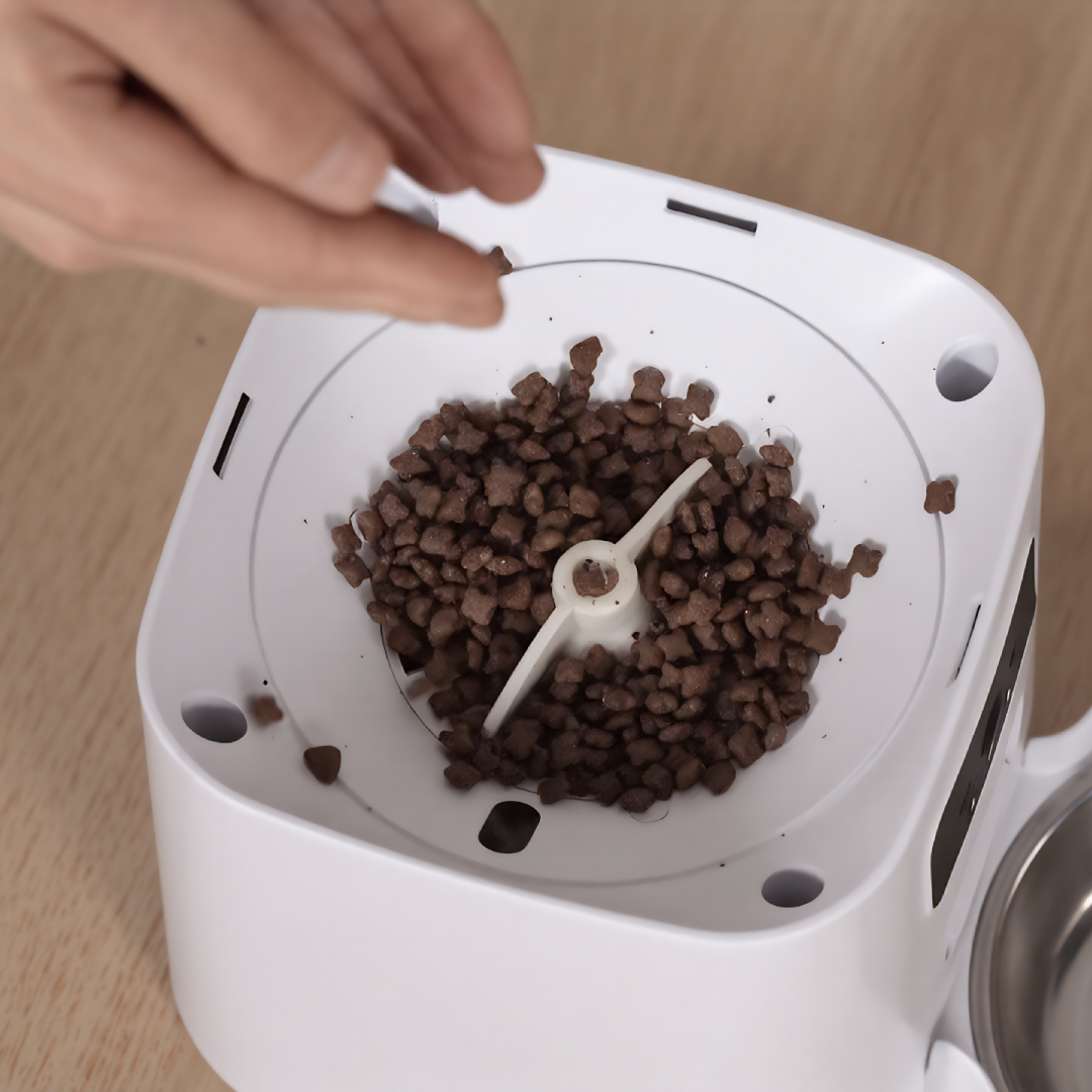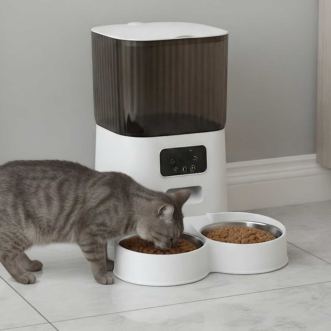 The feeder uses dual power supply (USB + battery backup), so it continues working even during power or WiFi interruptions. Your cat’s feeding schedule remains uninterrupted.