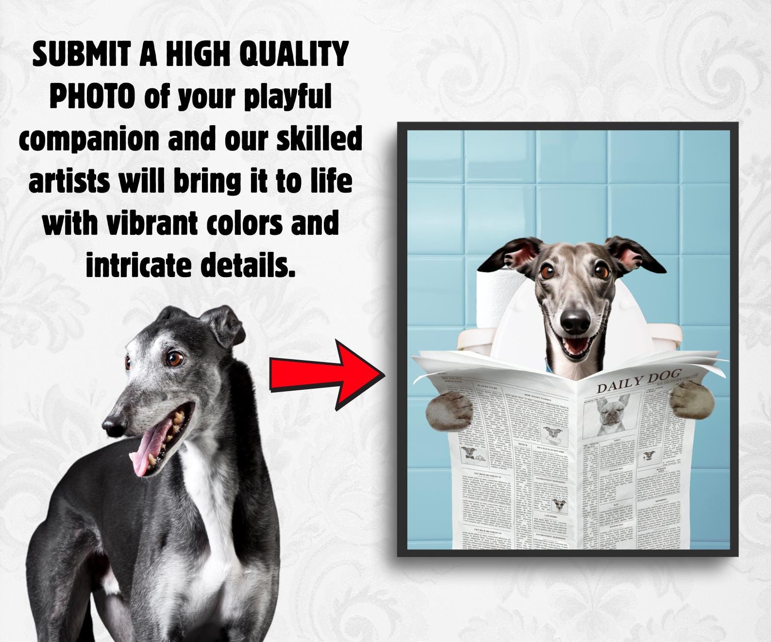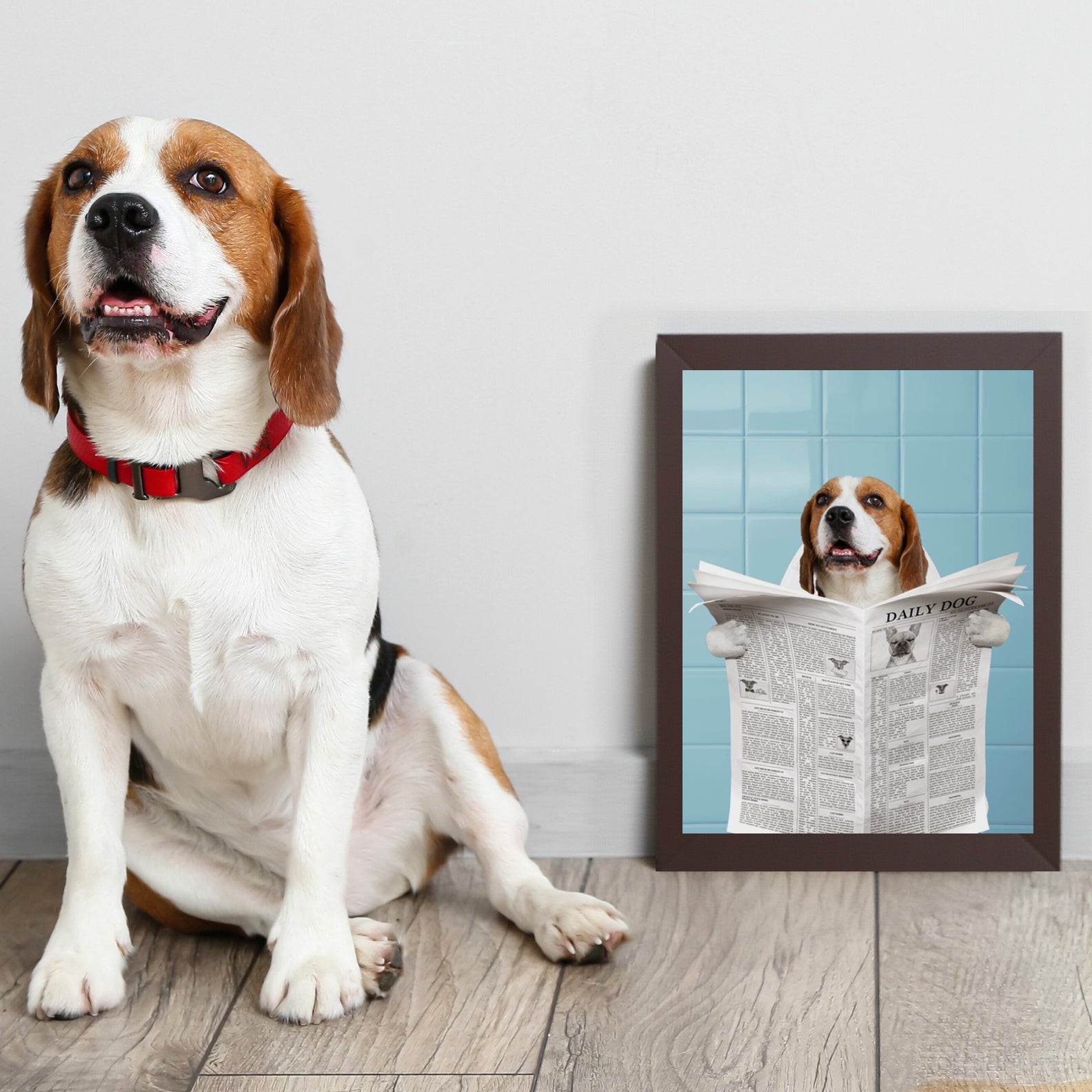 Capture the heartwarming essence of your furry friend reading the newspaper with this exclusive custom print. This one-of-a-kind masterpiece celebrates the unique bond you share with your dog, immortalizing their playful charm in a stunning artwork that will be treasured forever.